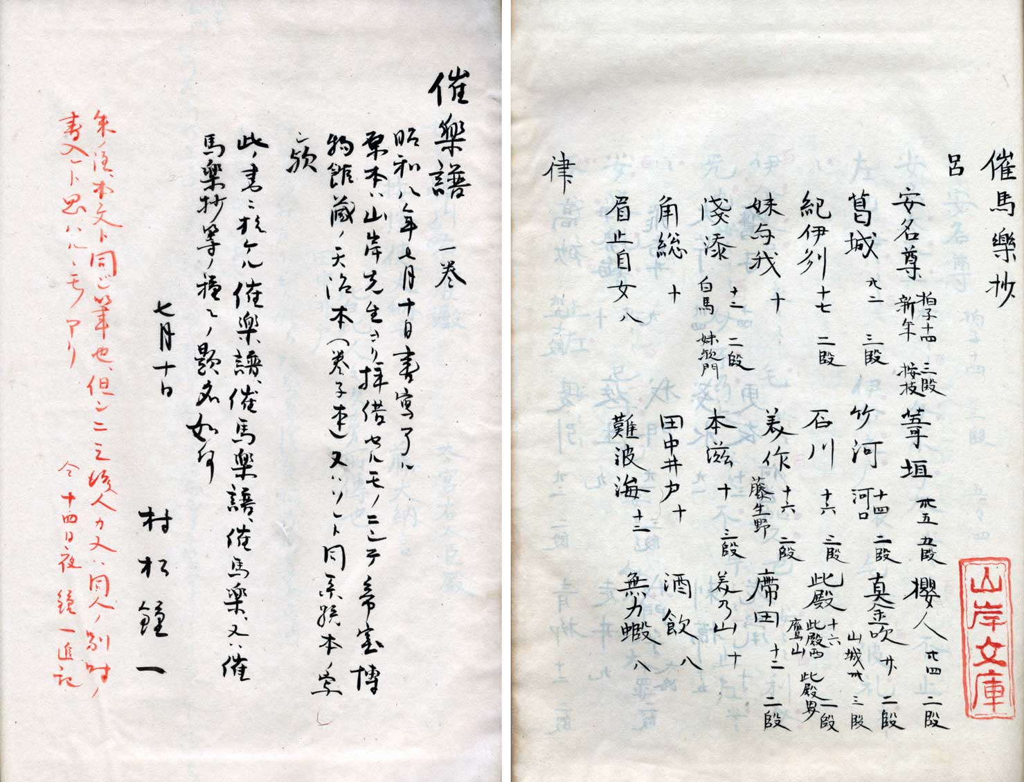催馬楽抄 催楽譜 <山岸徳平旧蔵本の写し 村松鐘一筆 >