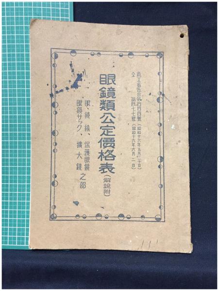 【眼鏡類公定価格表(解説付)】東京眼鏡同業組合