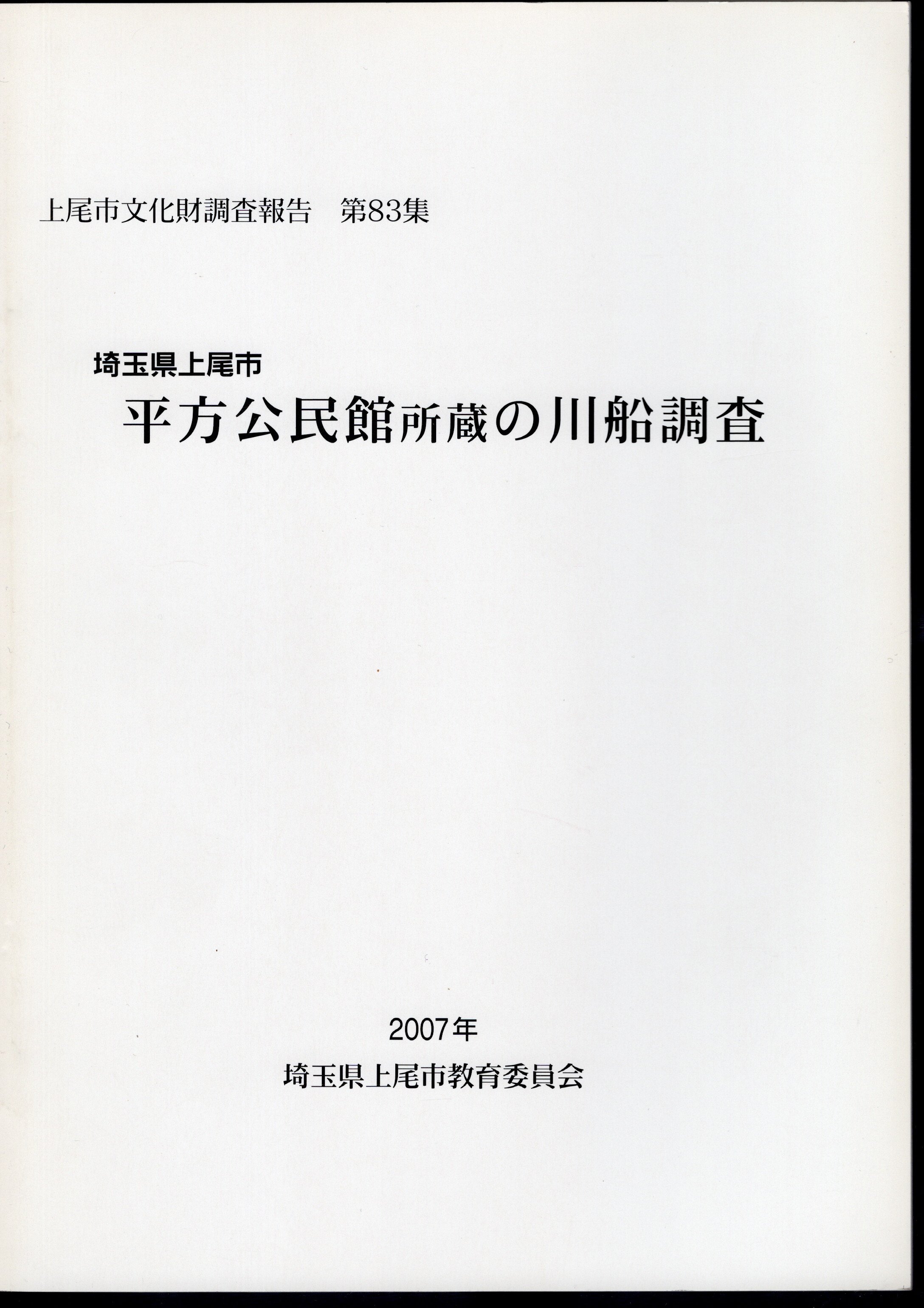 上尾市文化財調査報告 第83集 埼玉県上尾市平方公民館所蔵の川船調査