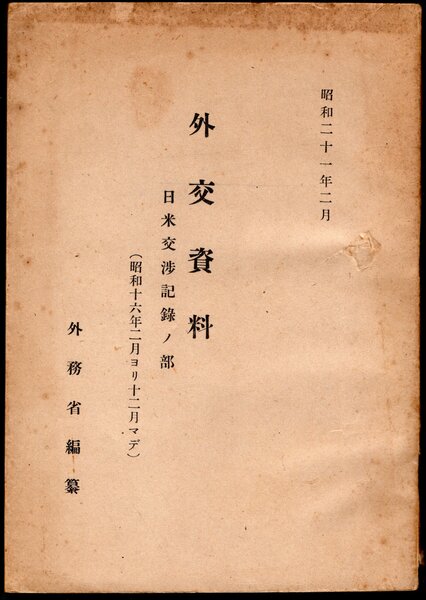 外交資料 日米交渉記録(昭和十六年二月ヨリ十二月マデ)