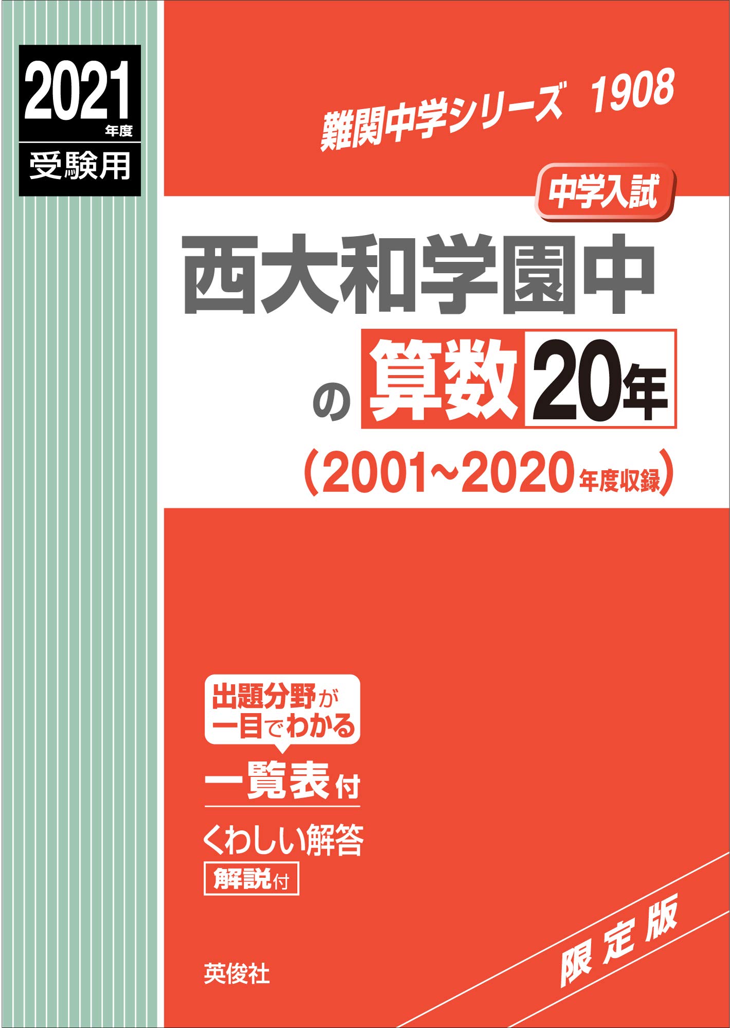 西大和学園中の算数20年 2021年度受験用 赤本 1908 (難関中学シリーズ)