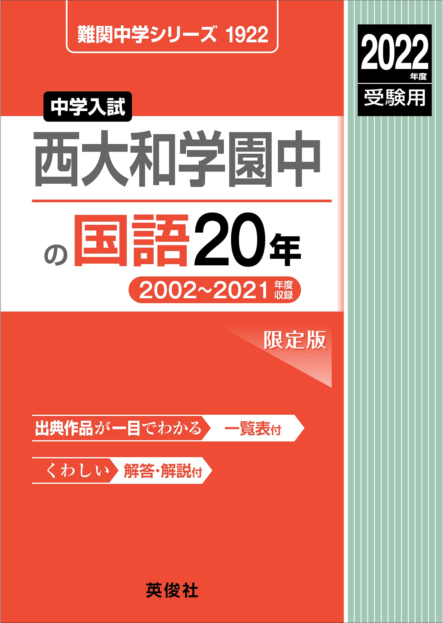 西大和学園中の国語20年 2022年度受験用 赤本 1922 (難関中学シリーズ)