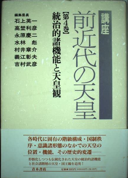 講座 前近代の天皇  「第1巻 天皇権力の構造と展開 その1」「第2巻 天皇権力の構造と展開 その2」「第3巻 天皇と社会諸集団」「第4巻 統治的諸機能と天皇観」「第5巻 世界史のなかの天皇 付・天皇制研究史」