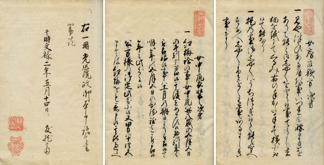 女房衆躾方次第 女房衆衣裳次第・女房方故実からなる <文録2年本奥書>
