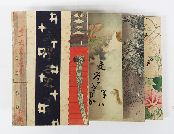 小説百家選 第1、3~10、13号(全15冊のうち計10冊。明治27年3月6日~10月18日)―都の風(小栗風葉/尾崎紅葉・補)、煩悩(柳浪)、指環(三昧道人)、鉄扇(青軒居士)、折矢柄(濱太郎)、金烏帽子(柳浪)、から衣(紫山人)、出世奴(乙羽庵)、船頭大将(江見水蔭)、銀杏がへし(金子春浦)、常陸帯(南翠外史)、氷室守(漣山人)ほか