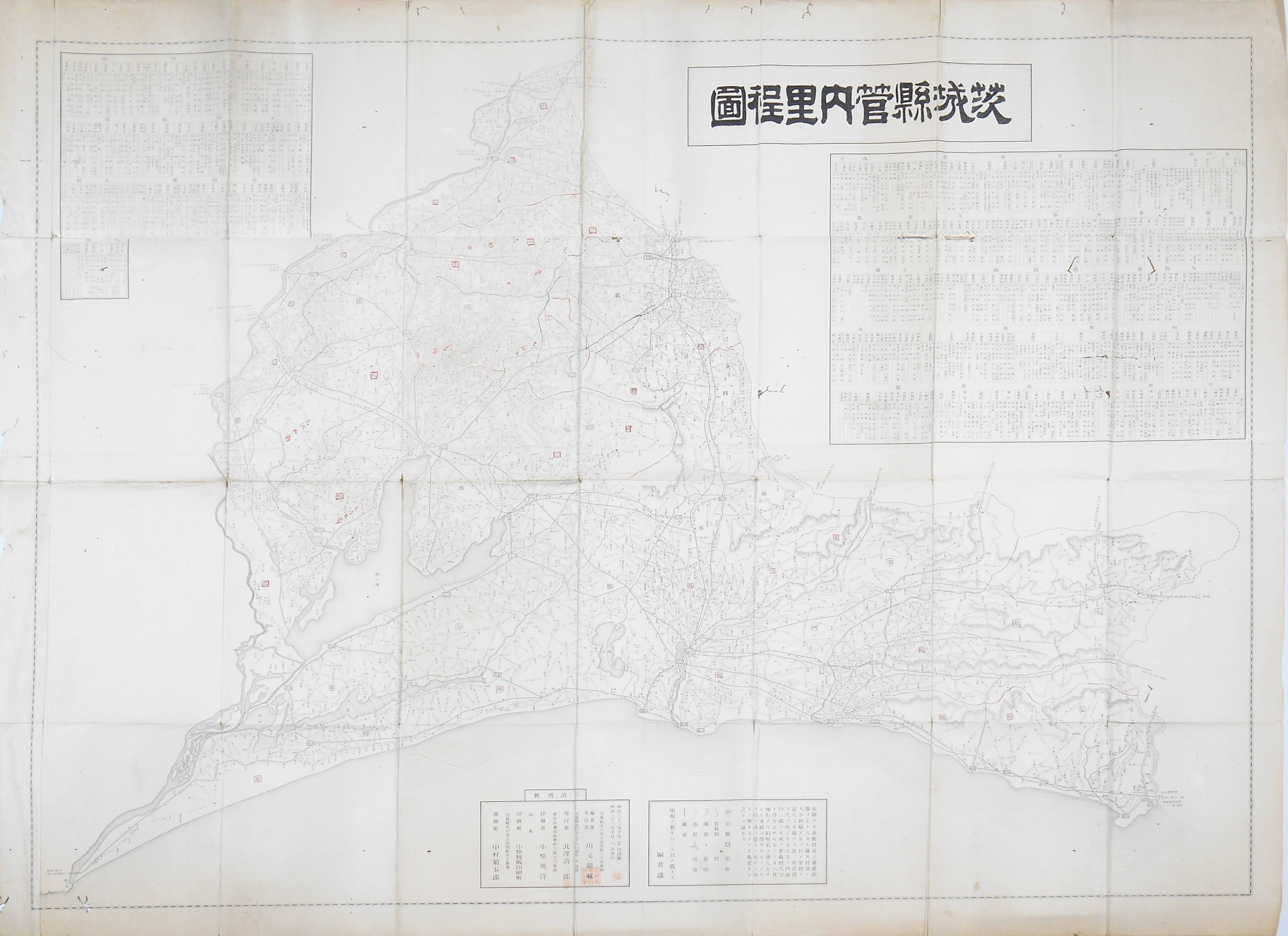 茨城県管内町村制全図 七五×三六センチ 銅版彩色図
