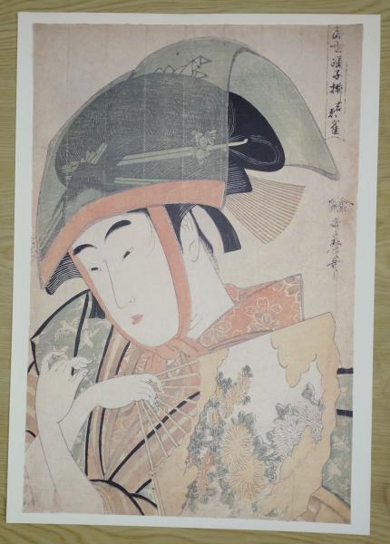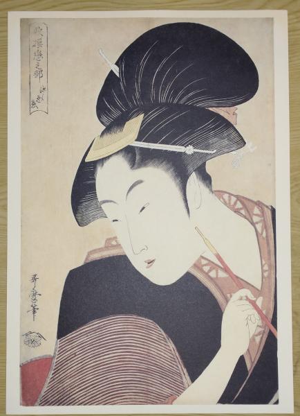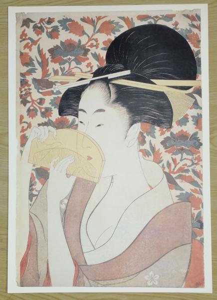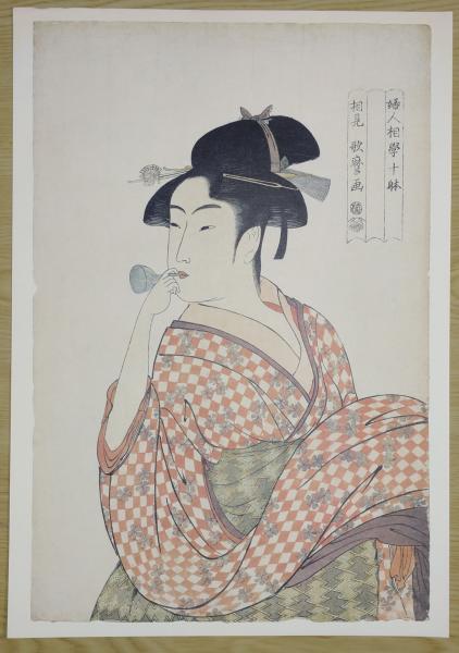 E26021601〇印刷 喜多川歌麿「婦人相学十躰 ポッピンを吹く女」 読売新聞社〇和本古書古文書