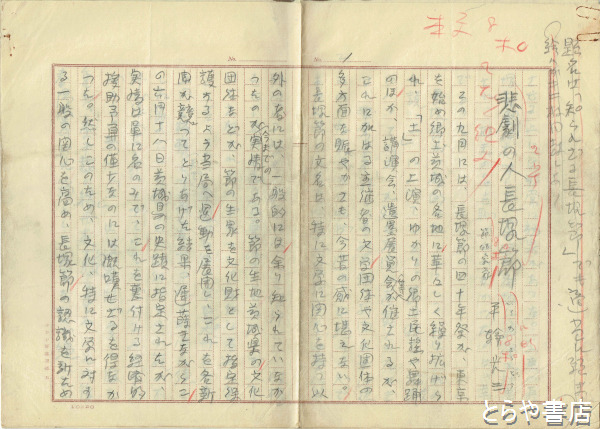 平輪光三草稿 「長塚節の人と作品」