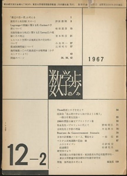 数学の歩み Vol.12/2 彌永先生-プロフィルに代えて(野崎昭弘)ほか <数学の歩み>