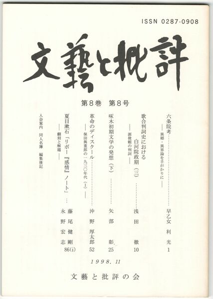 文芸と批評 8巻 8号 六条院考