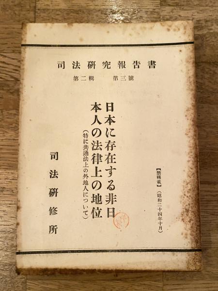 司法研究報告書 第2輯第3号 日本に存在する非日本人の法律上の地位(特に共通法上の外地人について)