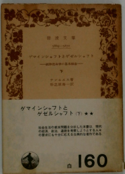 ゲマインシャフトとゲゼルシャフト : 純粋社会学の基本概念 上下2冊揃 <岩波文庫>