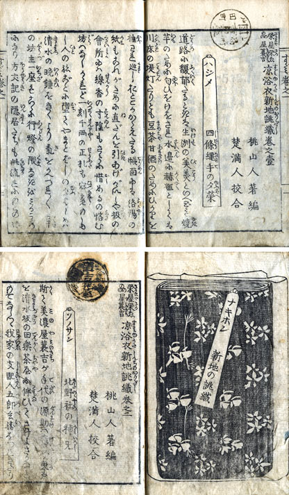 栄屋栄ゑみの屋蓑吉涼浴衣新地誂織 巻第1・2 見返し題:ナキホン新地誂織