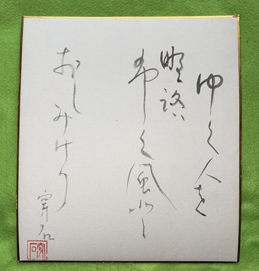 樋川穿石 色紙 肩於とし野路ゆく人や・・