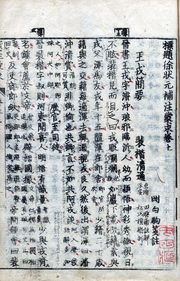 標題徐状元補注蒙求 献上本 8巻 頭書入