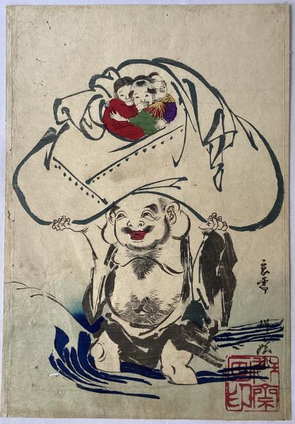 河鍋暁斎「新版大黒天福引之図」明治20年【浮世絵】