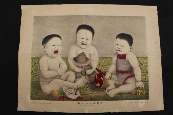 4 5 三童喜怒哀之図 石版色刷 34.5x45.5㎝