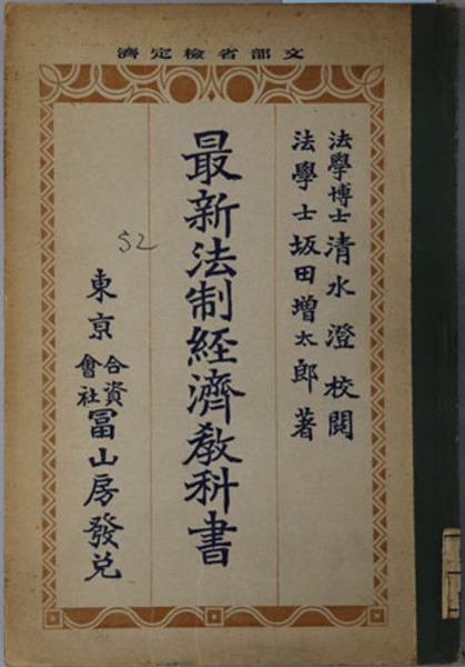 最新法制経済教科書 昭和3年2月7日文部省検定済:中学校・師範学校・法制及経済科用 訂正再版