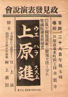 衆議院議員候補者上原進 政見発表演説会チラシ