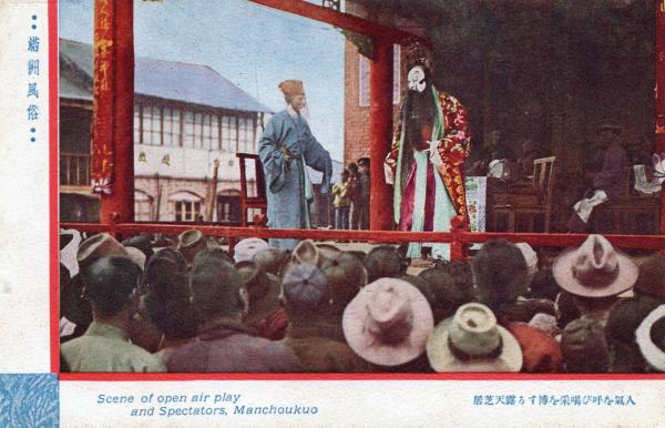 N26021139〇戦前絵葉書○満州風俗 人気を呼び喝采を博する露天芝居 満州 古写真○和本古書古文書