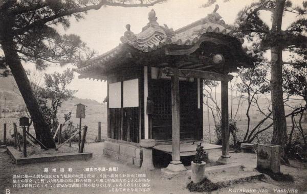 N25112693〇戦前絵葉書 ○源平の史跡 香川・屋島 鞍掛地蔵 高松市 古写真 解説付○和本古書古文書