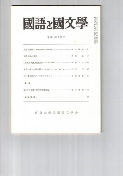 国語と国文学 874号(平成8年10月号 73巻10号) (北山と南岳 源氏物語若紫巻の仙境的世界/浦島伝説の淵源/「長明文字?」歌語注考 その成立基盤をめぐって/彼女の朝から別の朝へ 佐多稲子「キャラメル工場から」論/江戸東京語のアナタとオマエサン)