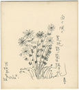 自筆色紙 白く咲く荒地野菊は強き花 Shikishi