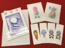 『螺旋家』加藤義勝 直筆画2点、送付状便箋1枚、オリジナルしおり3種付き