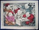 砂目石版画 「手習子供(六人の唐子書道の図)」