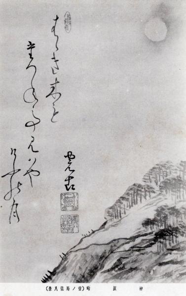 N25121224〇戦前絵葉書○岐阜 木曽 神坂峠 俳句 馬籠八景 (園原秋月)はゝき木もたづねて見ばやけふの月 完古 絵は蜂谷蘭渓 古写真○和本古書古文書