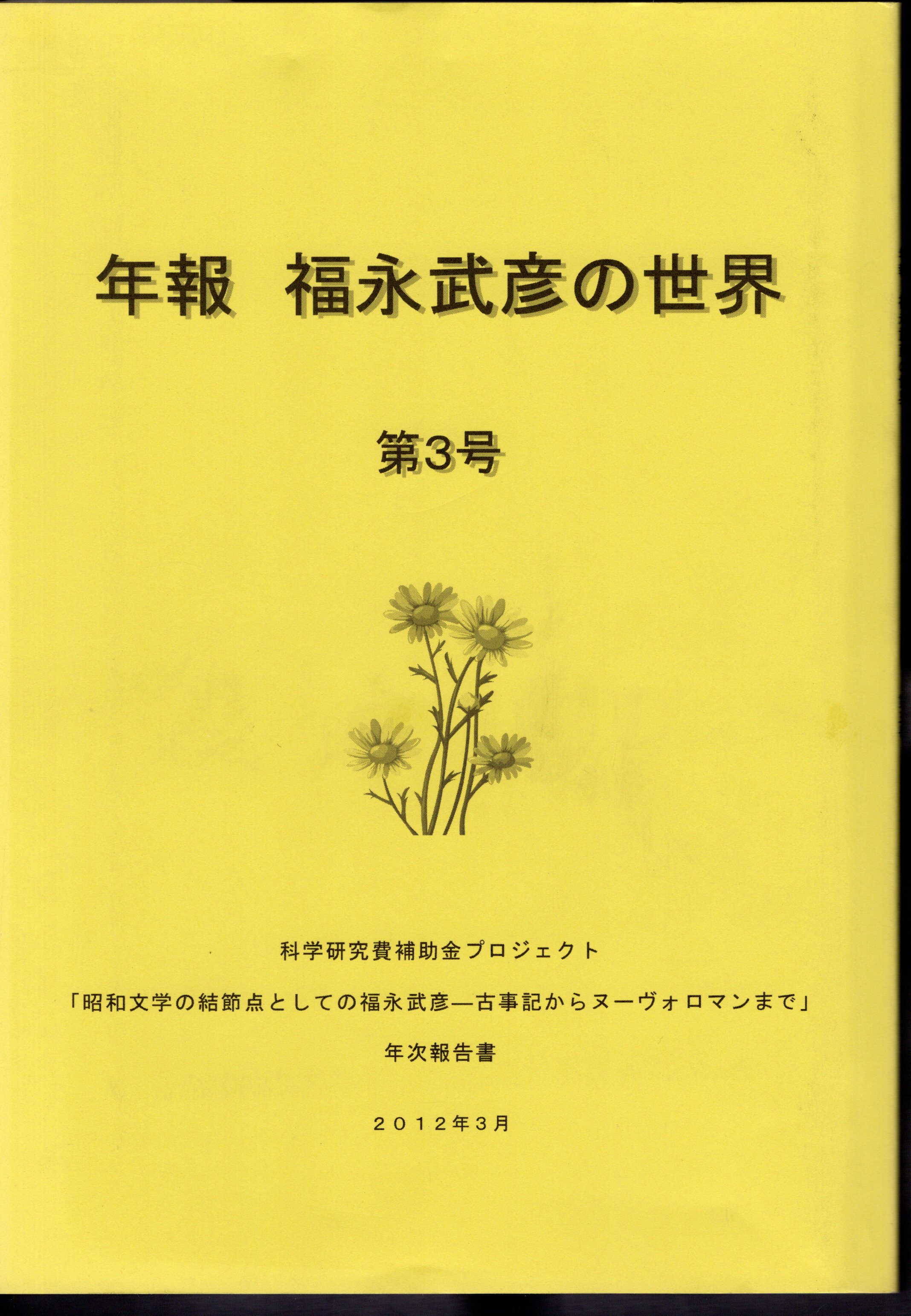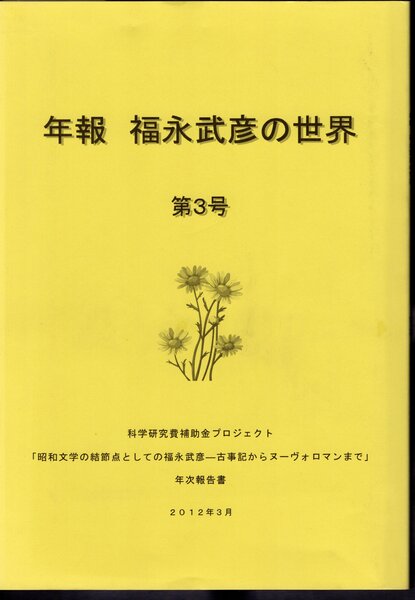 科学研究費補助金プロジェクト「昭和文学の結節点としての福永武彦-古事記からヌーヴォロマンまで」年次報告書 年報 福永武彦の世界 第3号