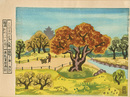 木版23×29.8cm1枚専用台紙(少シミ)に上部貼付 少マットヤケ  第6回日本版画展入選