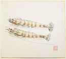 網干啓四郎色紙 えびのイラスト 色鉛筆画に水彩で彩色 落款入 裏に署名有