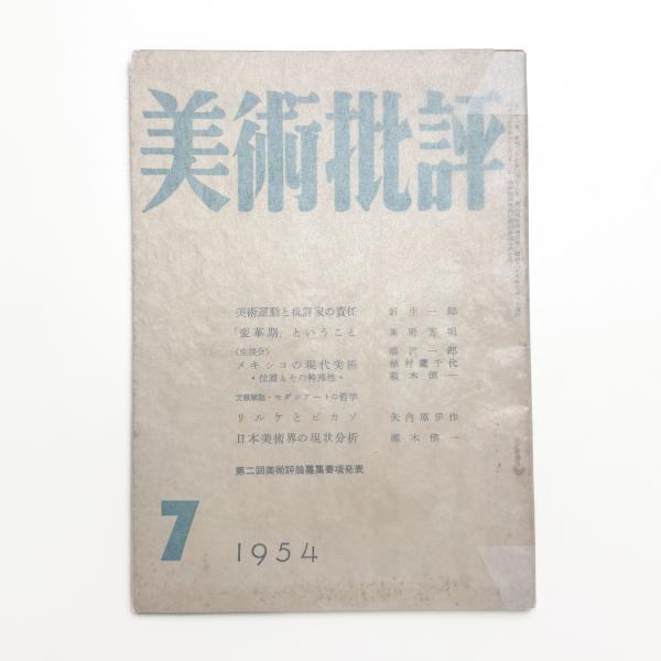 美術批評 1954年7月号 美術運動と批評家の責任/針生一郎 「変革期」ということ/東野芳明 リルケとピカソーサンタンバンクの悲歌についてー/矢内原伊作 日本美術界の現状分析/瀬木慎一 他 目次カット/福沢一郎
