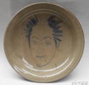 鈴木良三絵皿 笠間焼きの絵皿に自画像
