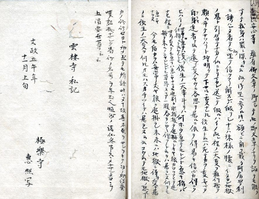 雲棲寺私記 小口題・御袖雲棲録 <極楽寺恵照筆>