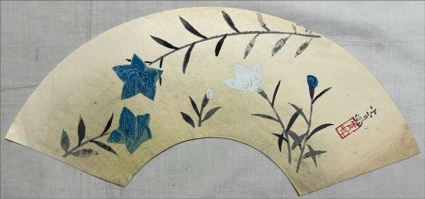前田青邨扇面木版画 【竜胆】