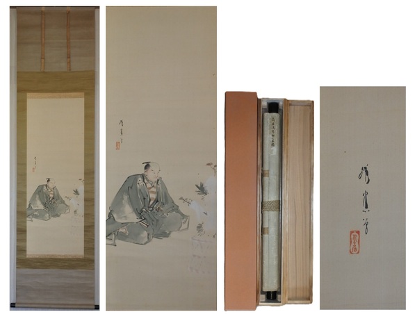 【複製】掛軸 良寛「良寛和尚筆人物画讃」紙本 和歌 人物画 江戸時代の僧 歌人 越後の人 読み有 共箱