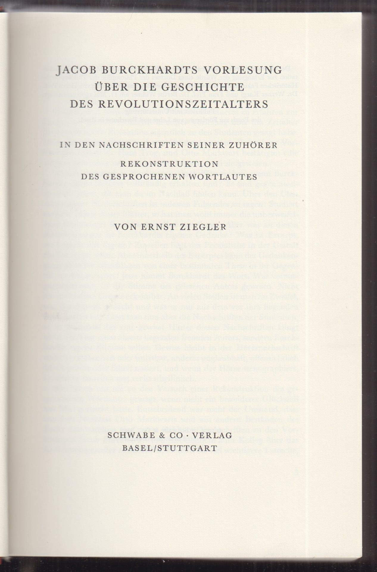 Jacob Burckhardts Vorlesung Uber Die Geschichte Des Revolutionszeitalters: In Den Nachschriften Seiner Zuhorer. Rekonstruktion Des Gesprochenen Wortlautes