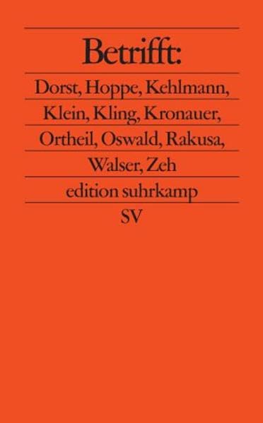 Betrifft: Dorst Hoppe Kehlmann Klein Kling Kronauer Ortheil Oswald Rakusa Walser Zeh Sebald Chotjewitz.