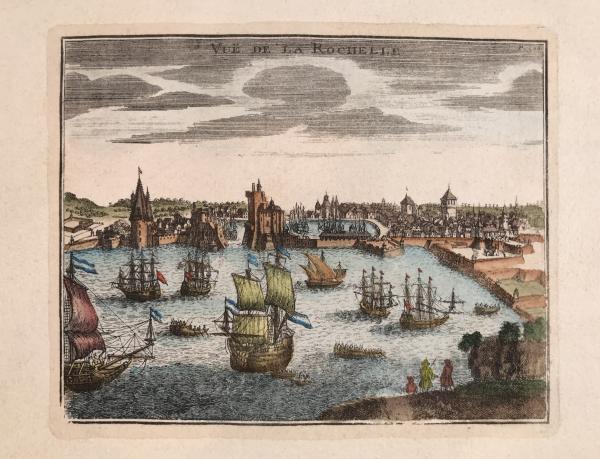18th C. Hand-Colored Engraving View of La Rochelle France Harbor 1st Edition