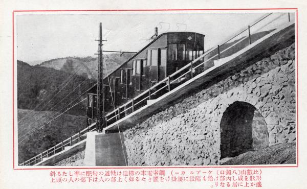 N26022642○戦前絵葉書○比叡山登山記念 比叡山八瀬口ケーブルカー 急角度の軌道勾配 解説付 古写真○和本古書古文書