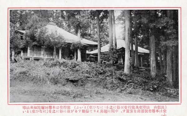 N26022645○戦前絵葉書○比叡山登山記念 比叡山法華堂及び常行堂 解説付 古写真○和本古書古文書
