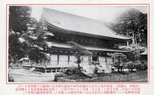 N26022647○戦前絵葉書○比叡山 登山記念 比叡山 釈迦堂 特別保護建造物 解説付 古写真○和本古書古文書