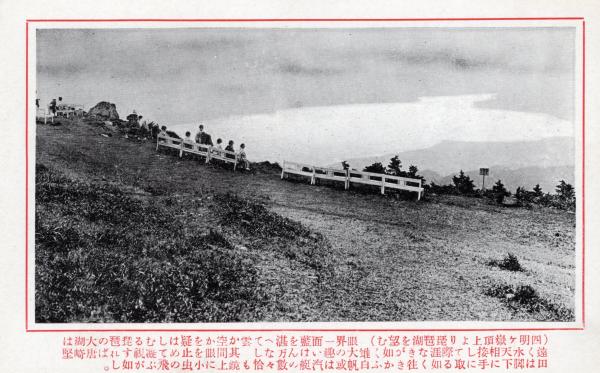 N26022654○戦前絵葉書○比叡山登山記念 比叡山 四明ケ嶽頂上より琵琶湖を望む 全長約一マイル 解説付 古写真○和本古書古文書