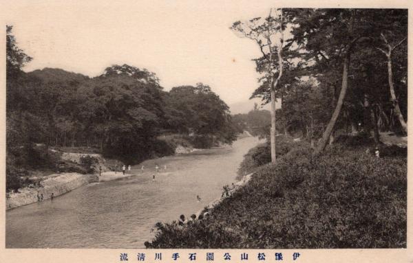 N26011639〇戦前絵葉書○愛媛県 伊予 松山公園石手川清流 古写真○和本古書古文書
