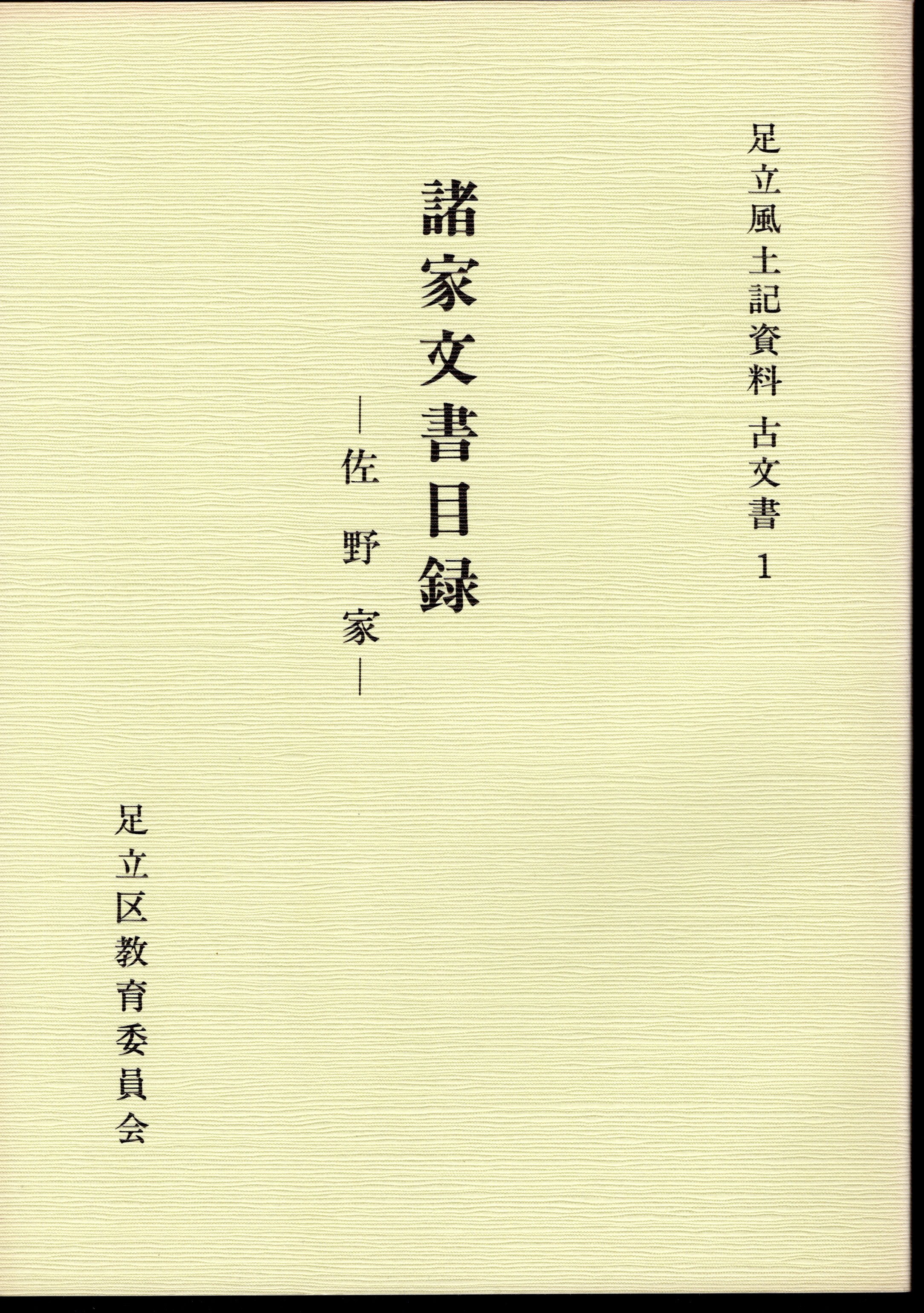 足立風土記資料 古文書1 諸家文書目録 佐野家