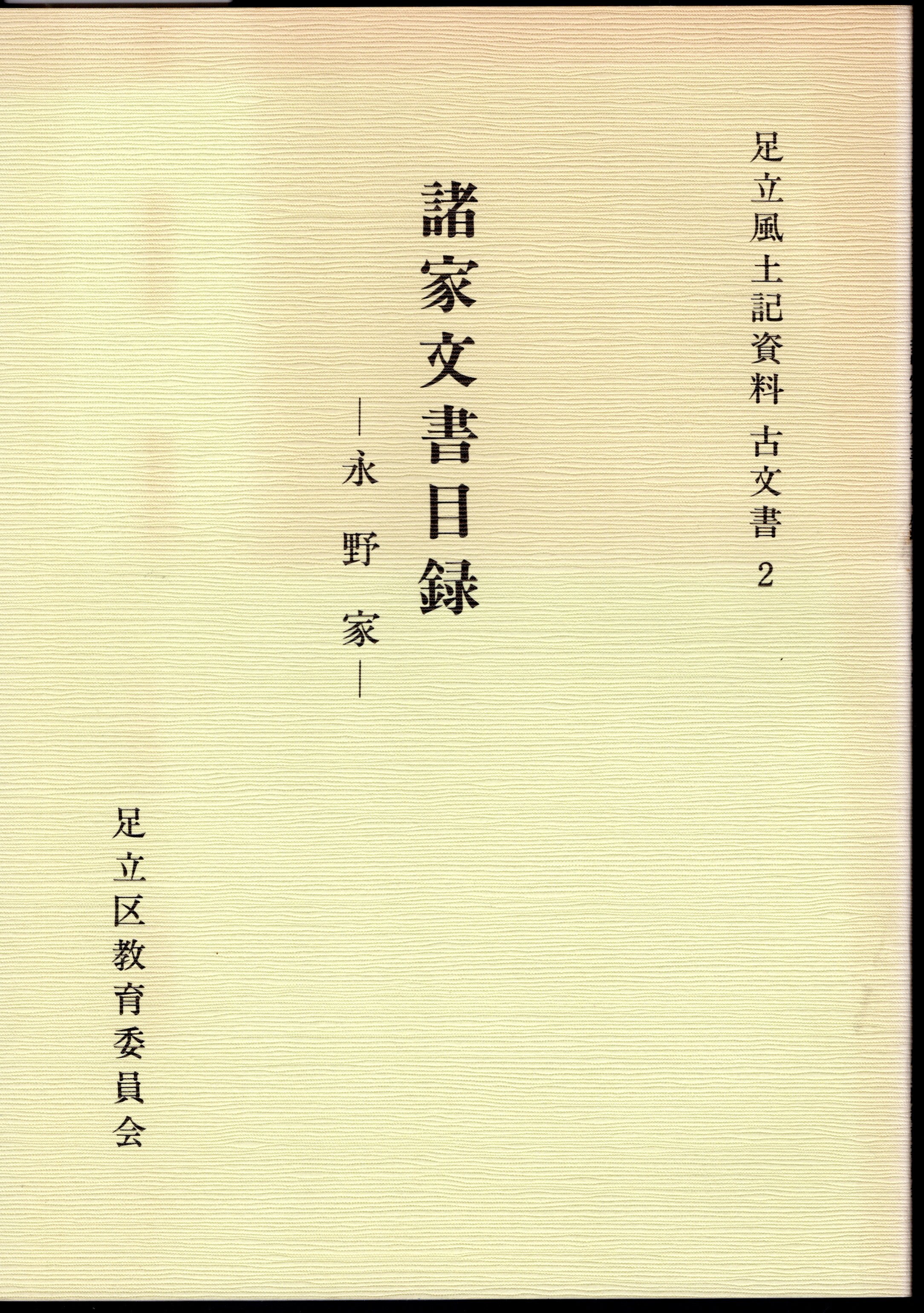 足立風土記資料 古文書 2 (諸家文書目録 永野家)