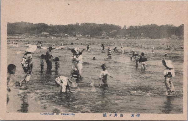 1000967■戦前 絵葉書■鎌倉 由井ヶ濱 (海水浴)