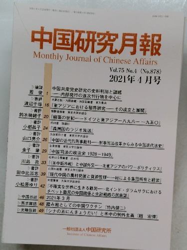 中国研究月報 Vol.75 No.4 (No.878 ) 2021年4月号